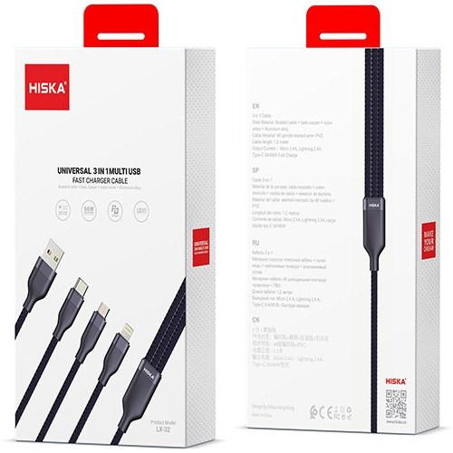توضیحات محصول کابل شارژ سهکاره هیسکا HISKA LX32 🔌⚡