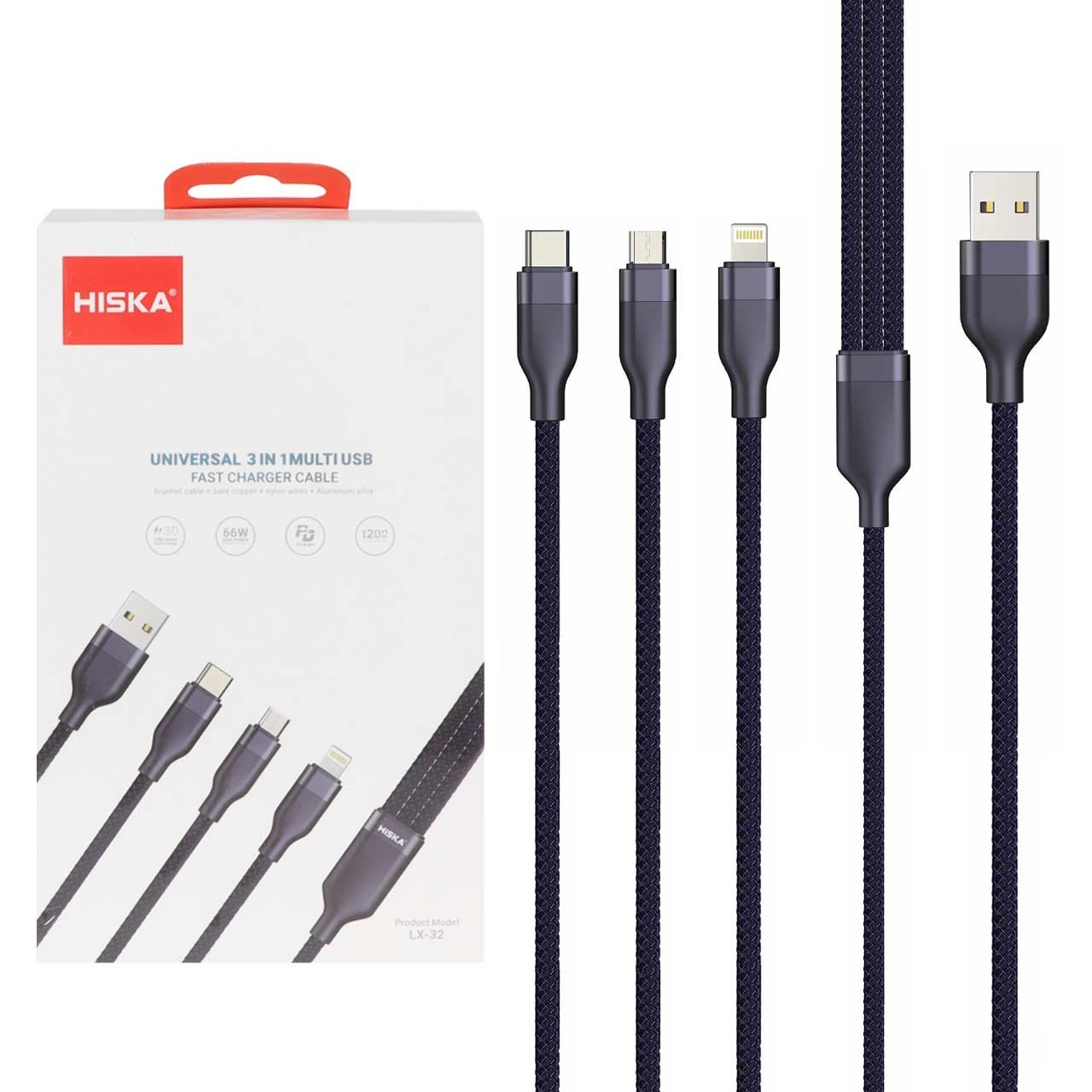 توضیحات محصول کابل شارژ سهکاره هیسکا HISKA LX32 🔌⚡