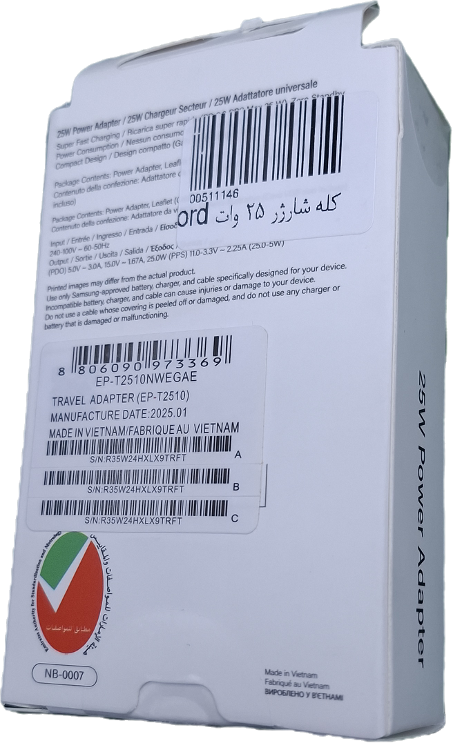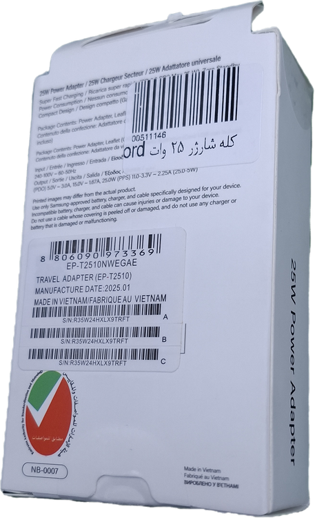 شارژر دیواری سامسونگ EP-T2510 اورجینال 3 پین یکی از بهترین گزینهها برای شارژ سریع و ایمن گوشیهای سامسونگ و سایر دستگاههای سازگار است 📱✅. این شارژر با پکینگ 2025 و برد ساخت 2025 عرضه میشود که اصالت و بهروز بودن کالا را تضمین میکند 🆕✔️.