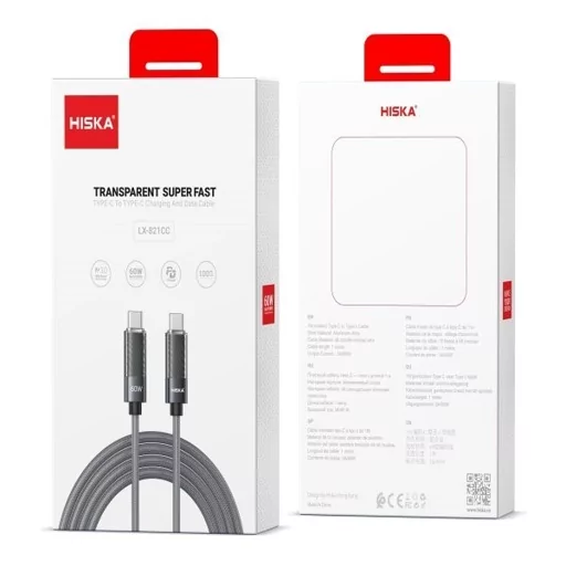 کابل شارژ 60 وات تایپ C به تایپ C هیسکا مدل LX-821CC 🔌⚡ یک انتخاب قدرتمند و بادوام برای شارژ سریع و ایمن دستگاههای مدرنه.