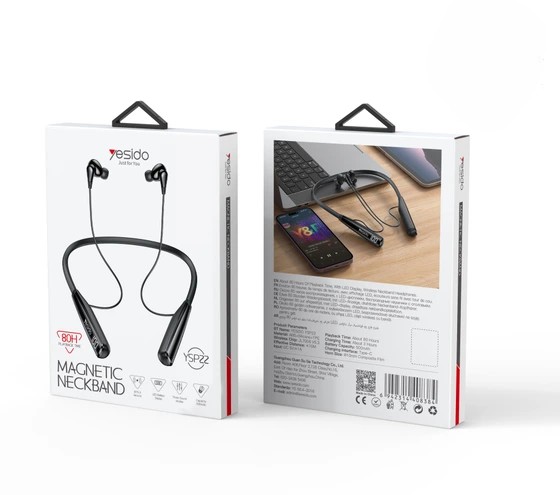 هندزفری بلوتوثی گردنی Yesido YSP22 با طراحی ارگونومیک و وزن سبک، تجربهای راحت و بیدغدغه برای استفاده طولانیمدت فراهم میکند 🎵 این هندزفری مجهز به درایور ۱۰ میلیمتری است که صدایی شفاف و متعادل با بیس مناسب تولید میکند، بنابراین موسیقی و تماسهایتان با کیفیت بالا منتقل میشوند 🔊