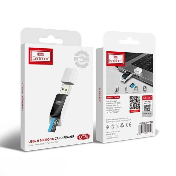 کارتخوان Earldom ET-OT25 یک ابزار جمعوجور و کاربردی برای انتقال سریع اطلاعات از کارتهای MicroSD / TF به لپتاپ یا کامپیوتر است 😊 طراحی سبک و کوچک آن باعث میشود همیشه بتوانید بهراحتی همراه خود داشته باشید. بدنه ساختهشده از پلاستیک ABS باکیفیت، مقاومت مناسبی در برابر استفاده روزمره ایجاد کرده و خیالتان را از بابت دوام راحت میکند.
