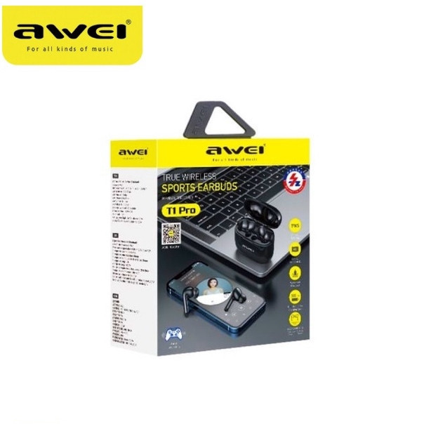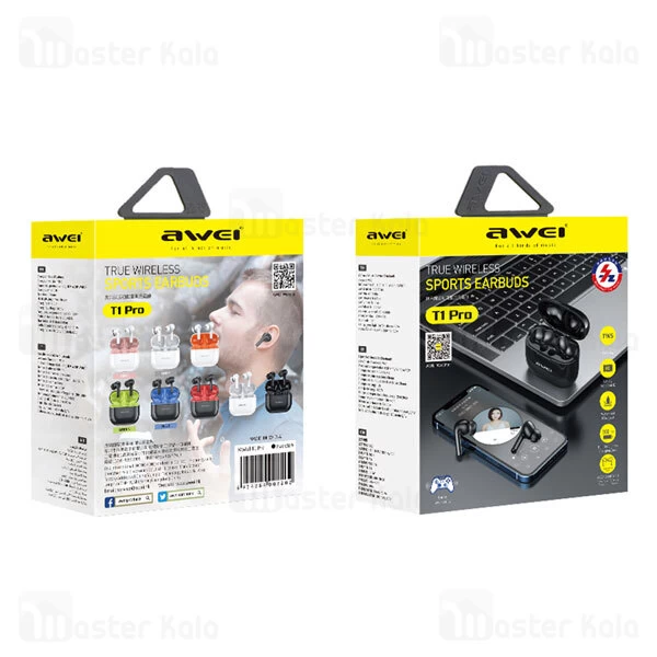 هندزفری بلوتوثی AWEI T1 pro دارای طراحی توگوشی میباشد. هندزفری T1 pro به صورت بی سیم و از طریق بلوتوث با برد مفید 10 متر به سیستم شما متصل میشود. شما میتوانید با داشتم این محصول به مدت 4 ساعت مکالمه داشته باشید و یا تا 3.5 ساعت به موسیقی مورد علاقتان گوش دهید و برای شارژ مجدد آن تنها به 2 ساعت زمان نیاز دارید. داشتن کلید کنترل صدا بر روی گردنی این هندزفری از دیگر ویژگی های جذاب این محصول است. این earbuds های بی سیم با استفاده از تکنولوژی کنترل لمسی کار میکنند. کنترل لمسی آسان به شما اجازه پاسخ دادن و قطع تماس ها را می دهد و یا به راحتی با ضربه زدن به این هدفون های بی سیم گوش می دهید. هدفون کاملاً بی سیم اوی، Awei T1 pro انتخاب بسیار مناسبی برای گوش دادن به موزیک هنگام ورزشهای سبک است. این هدفون از بلوتوث ورژن 5.0 بهره میبرد که باعث میشود اتصال سریعتر و پایدارتری داشته باشید و مصرف باتری آن بهینهتر باشد Awe T1 pro دارای میکروفون و کنترل لمسی بر روی هر دو ایرباد است که با استفاده از آن میتوانید تماسها و موزیک خود را مدیریت کنید. همچنین میتوانید این هدفون را بصورت تک گوش یا دوگوش استفاده کنید. نگران استفاده از این هدفون در هوای بارانی نباشید. استاندارد IPX4 این هدفون را در برابر باران محافظت میکند.