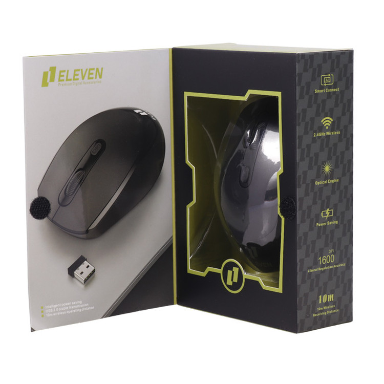 ماوس بیسیم ELEVEN با طراحی سبک، مدرن و ارگونومیک، انتخابی مناسب برای کاربران اداری و خانگی است. بدنهی ساختهشده از پلاستیک مقاوم ABS، دوام بالا و وزن سبک ۴۶ گرمی را به همراه دارد و در ابعاد ۱۰۰×۶۲×۳۷ میلیمتر طراحی شده تا بهراحتی در دست جا بگیرد.