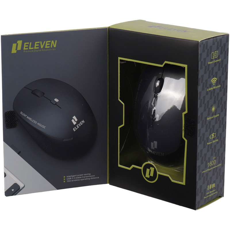 ماوس بیسیم ELEVEN مدل WM907 با طراحی زیبا و عملکرد بیصدا (Silent Mouse) گزینهای عالی برای محیطهای کاری و استفاده طولانیمدت است. این ماوس دارای ۴ کلید مقاوم با عمر بیش از دو میلیون کلیک بوده و با اسکرول لاستیکی نرم، حرکت روان و کنترل دقیقی را ارائه میدهد.