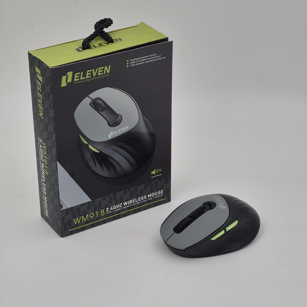 ماوس بیسیم ELEVEN مدل WM918 ترکیبی از طراحی ارگونومیک، عملکرد بیصدا و دقت بالا است که برای کاربران حرفهای و استفاده روزمره طراحی شده است. این ماوس با وزن ۲۰۰ گرم و ابعاد ۱۲۰×۶۰×۳۰ میلیمتر، بهخوبی در دست راست قرار میگیرد و استفادهای راحت و دقیق را ارائه میدهد.