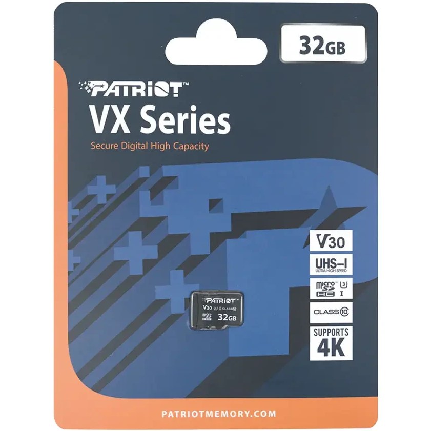 کارت حافظه Patriot VX microSD یک گزینهی پرسرعت و مقاوم برای استفاده در دوربینهای ورزشی، موبایل، تبلت و ضبط ویدئوهای سنگین است. این کارت با استاندارد UHS-I U3 و کلاس 10 تولید شده و توانایی ثبت ویدئوهای 4K را بدون افت کیفیت دارد.